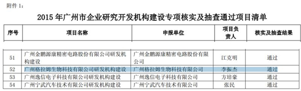 我司申报的2015年广州市企业研究机构建设专项项目已进入立项公示名单。公示时间为2016年1月25日至1月29日。