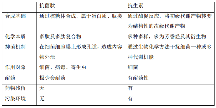 ② 抗生素和抗菌肽的区别: