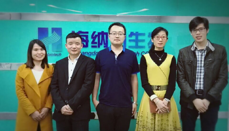 3月23日上午,公司研发经理张宏刚博士和市场总监王琪博士到广东海纳川生物科技股份有限公司(以下简称海纳川生物)交流学习。